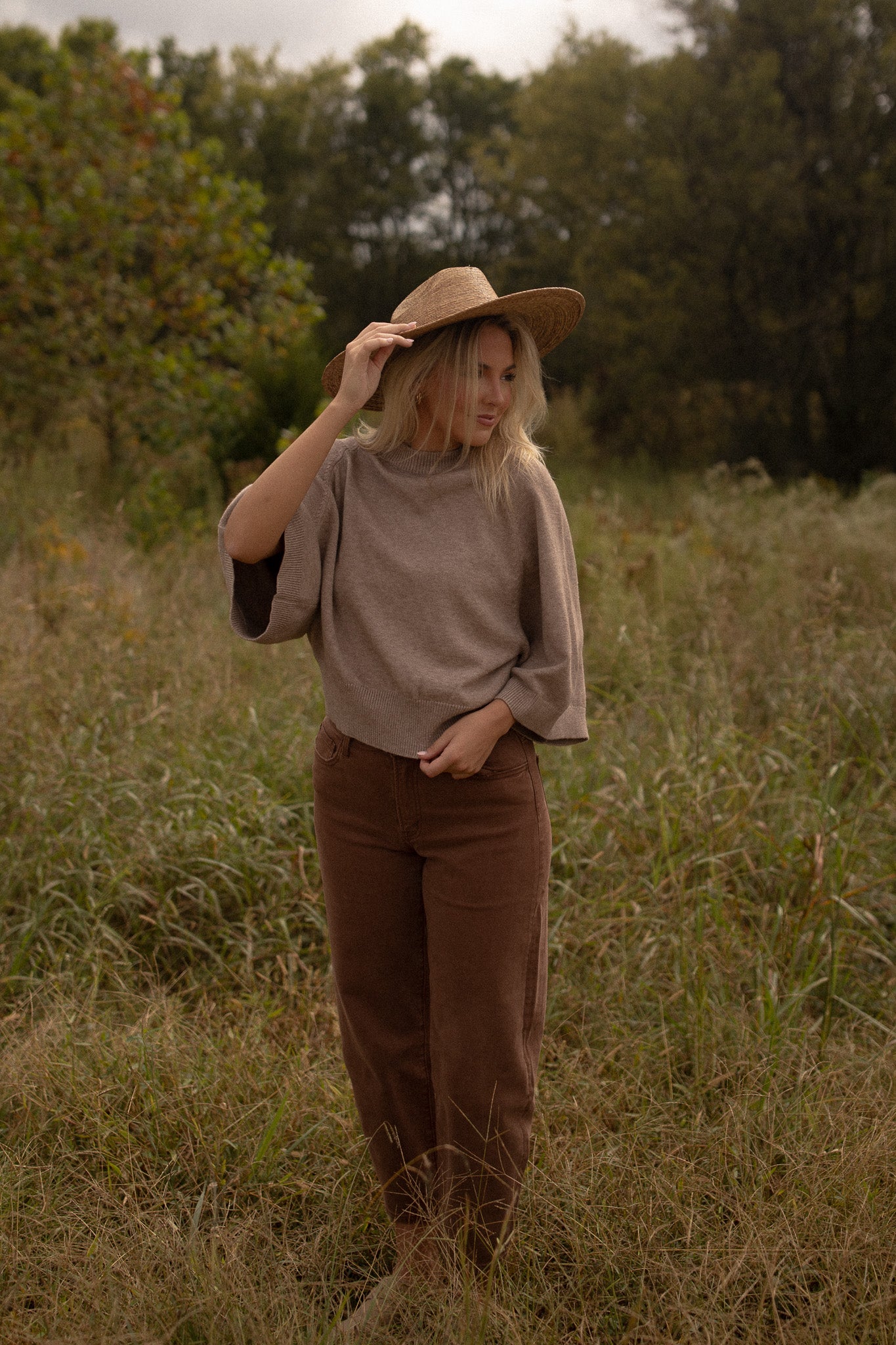 - Super high rise brown slim barrel jeans Comfort stretch denim, super high rise waist, finished hem, cropped length, slim barrel jeans F. Rise: 11" / inseam: 27 1/2" / leg opening: 14 1/2" Model is 5'10" wearing a size 26
