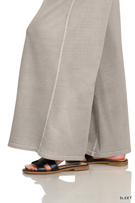 • FRENCH TERRY PIGMENT DYE & ENZYME WASHED PANTS - DRAWSTRING BAND WAIST - POCKETS TOTAL