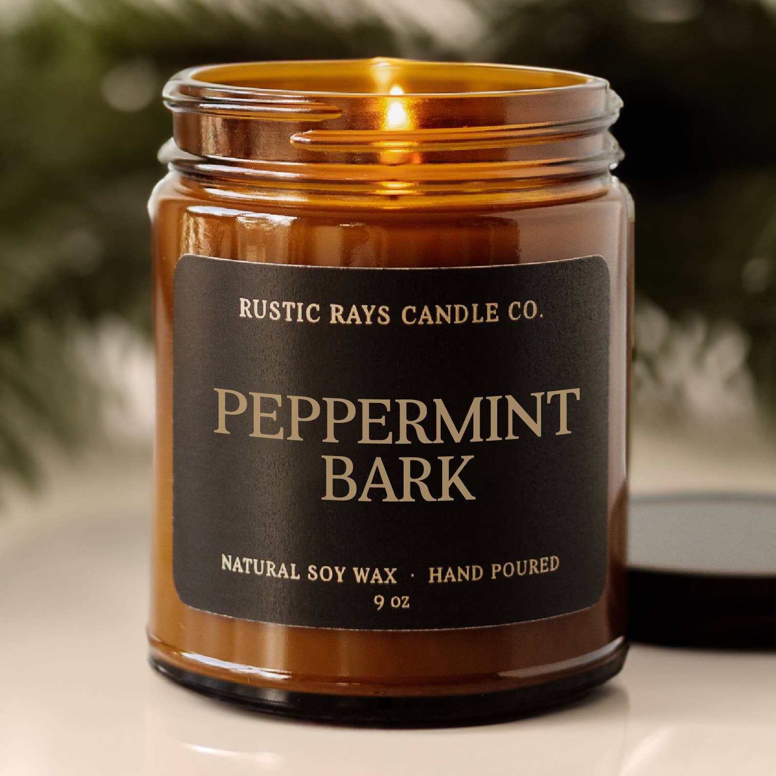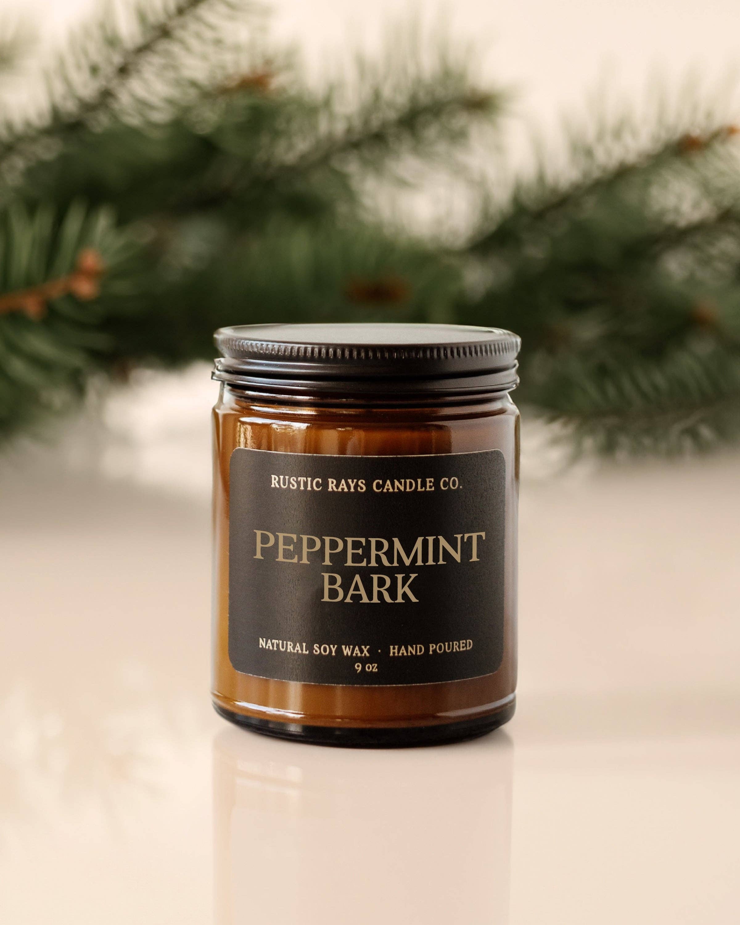 Peppermint Bark Soy Candle - Winter Candle - Amber Jar - 9oz