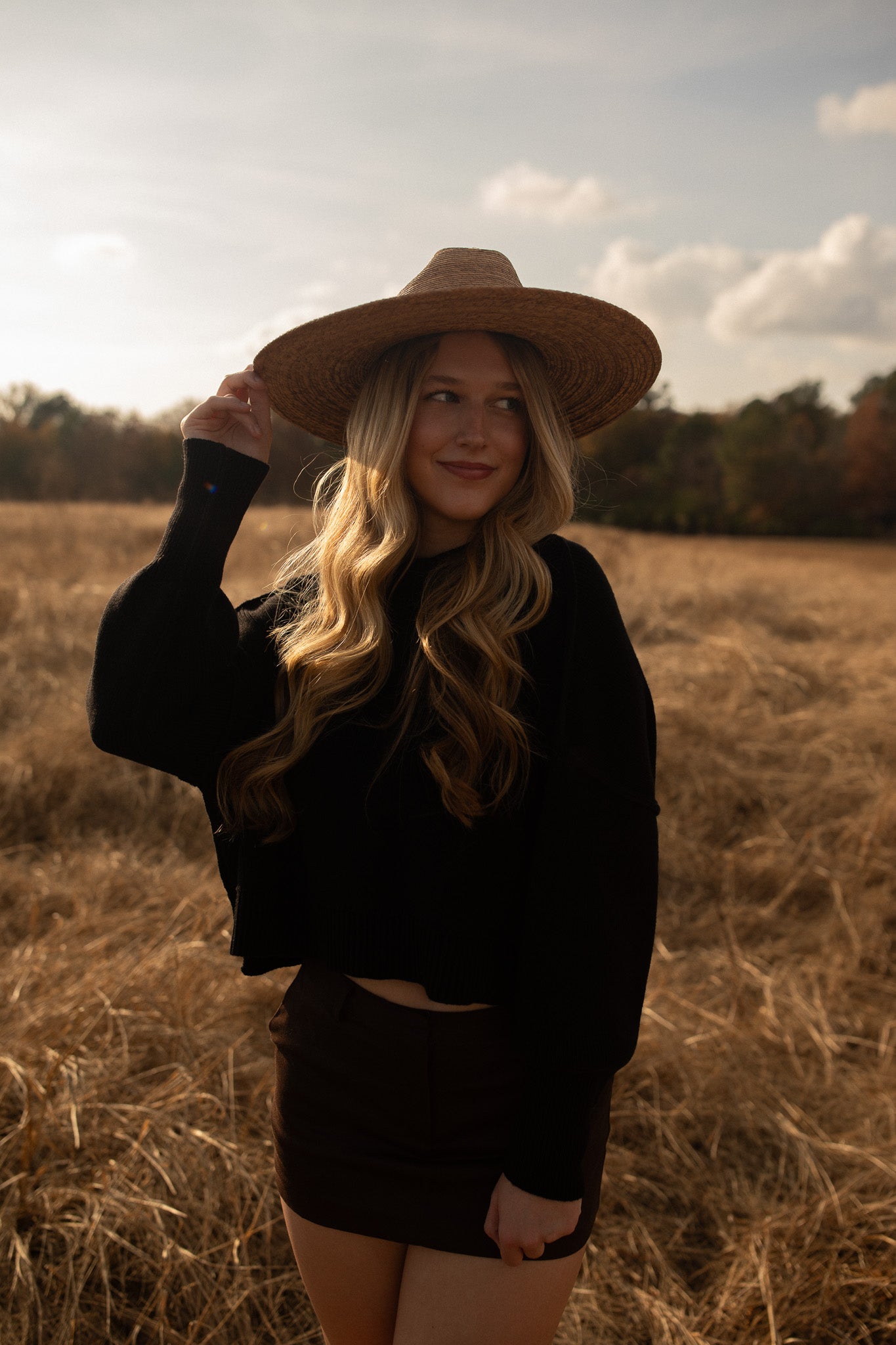- Cropped Boxy Sweater wit side slit and crew neckline