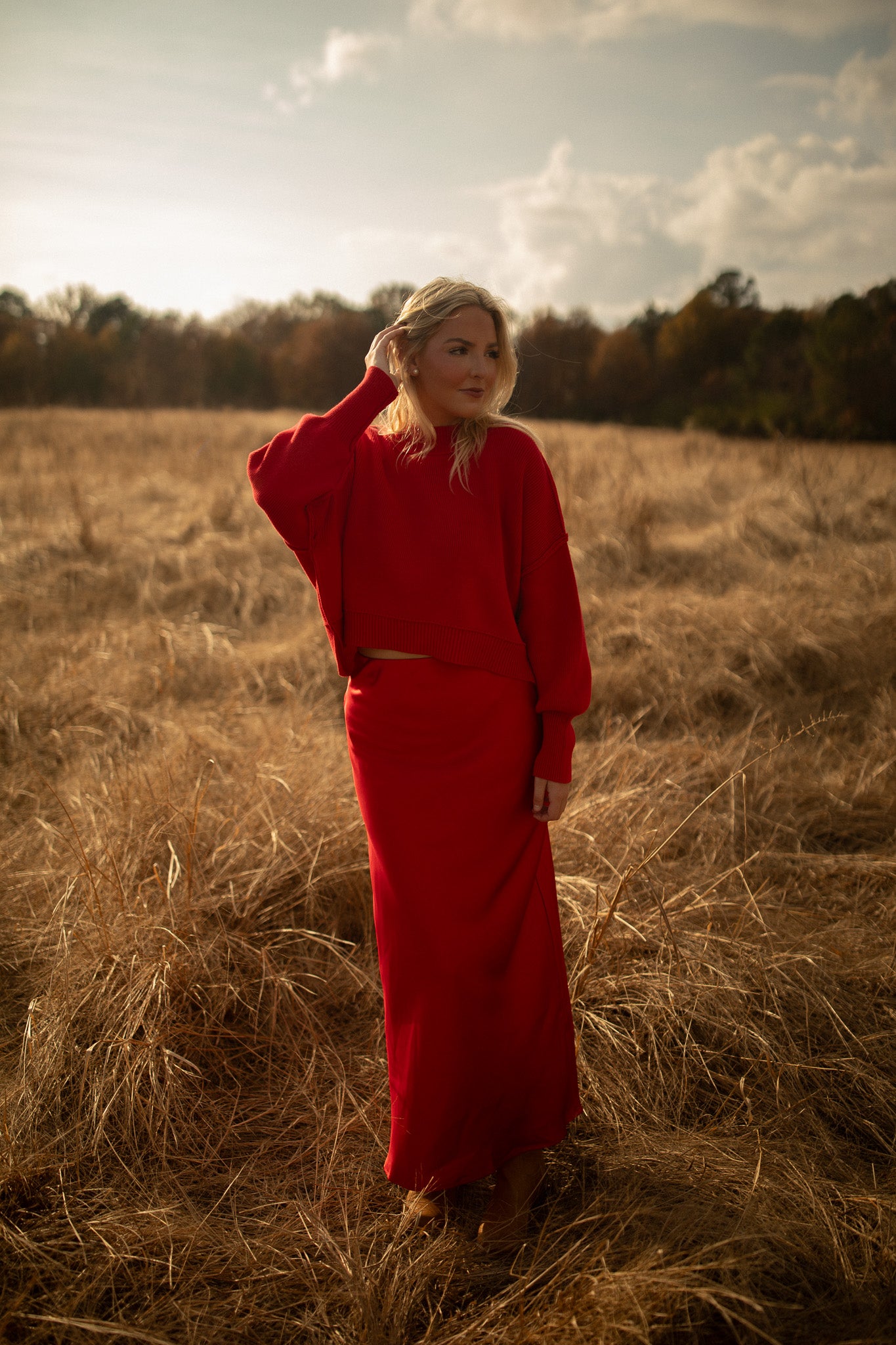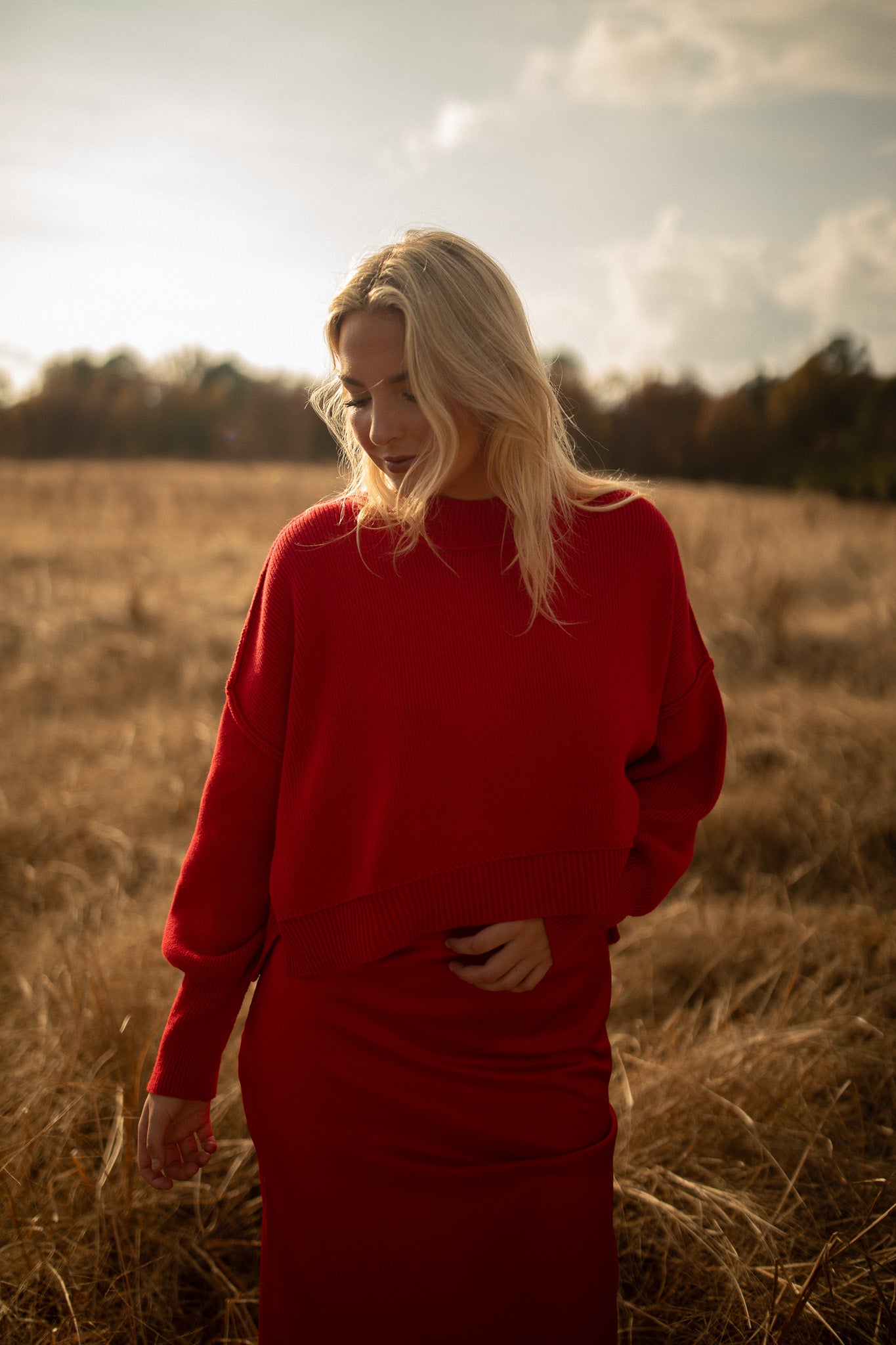 - Cropped Boxy Sweater wit side slit and crew neckline